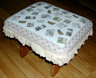 To see a little larger version, just click on the image. Scroll down to see pictures of a stool with fabric created using the antique teddies